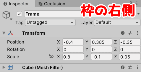 ​【サンプルの入力例(Displayの子オブジェクトにしてから調整する)】