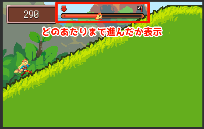 ​ このバーを実装するために必要な座標は「スタート地点」「ゴール地点」「現在地点」の3つです。スタート地点とゴール地点の座標を元に、現在地点がステージの何%の場所なのかを計算してみましょう。